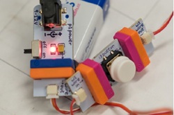 The LittleBits are electronic building blocks that when joined together to create circuits. They snap together using magnets and are colour coded according to power, inputs and outputs. Each littleBit has its own function such as sensors, lights or sensors.