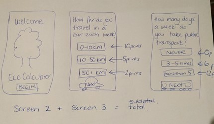 - Explain to students that they need to show how their own eco-calculator will work. How can they show the journey the user might take through their interactive calculator?