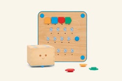 Cubetto is a wooden robot that uses wooden shapes to explore simple algorithms. The control board has a number of shapes representing directions and this is used to program the wooden robot. Cubetto comes with a series of mats for children to take on coding adventures.