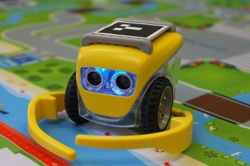 Ozobot is a tiny robot that uses a color code language to navigate. Ozobots use sensors to follow tracks which can be printed or hand drawn or constructed using the app. The OzoBlockly app is a visual programming language for the robots.